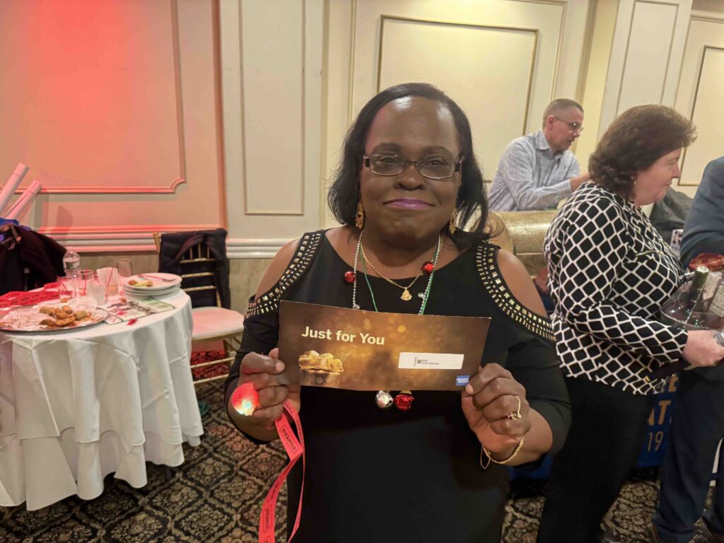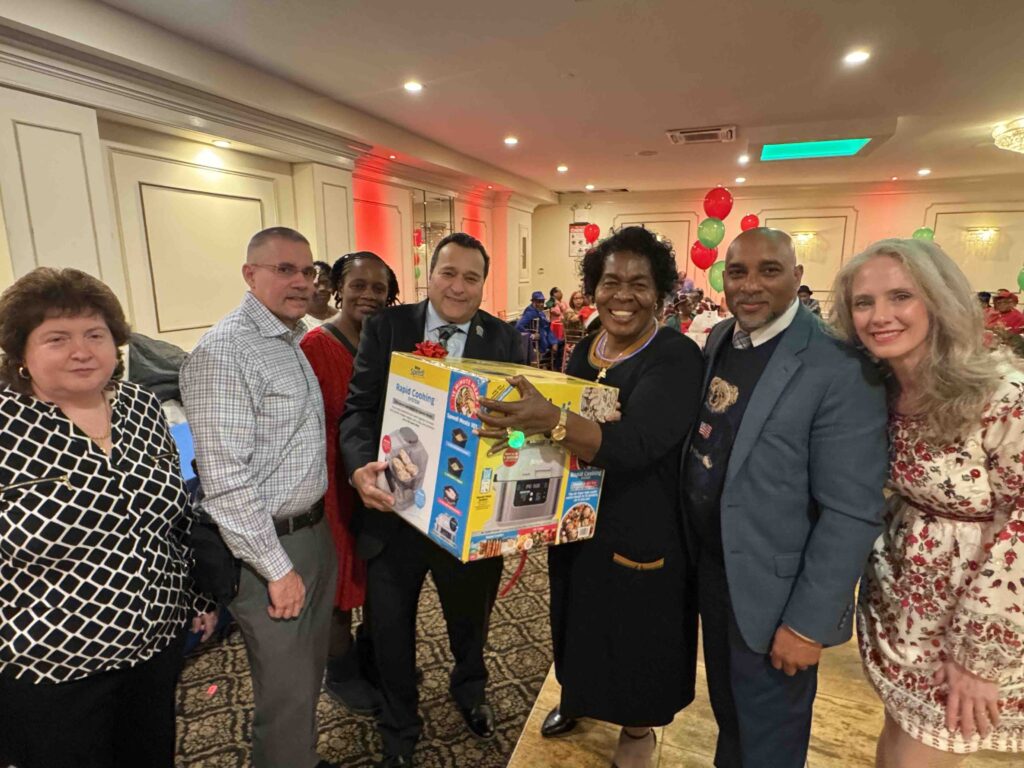 More than 150 retirees and guests turned out for the annual Retirees Association Holiday Party on Dec. 8, 2023 at the Eastwood Manor in the Bronx. The afternoon gala featured a cocktail hour, a full dinner and open bar throughout the 5-hour party from 1:00pm to 6:00pm. The party also featured nice giveaways like Retiree Association tee-shirts and posters, as well as a raffle that included a widescreen TV courtesy of Ken Larkin of Fusco, Bradenstein and Rada.