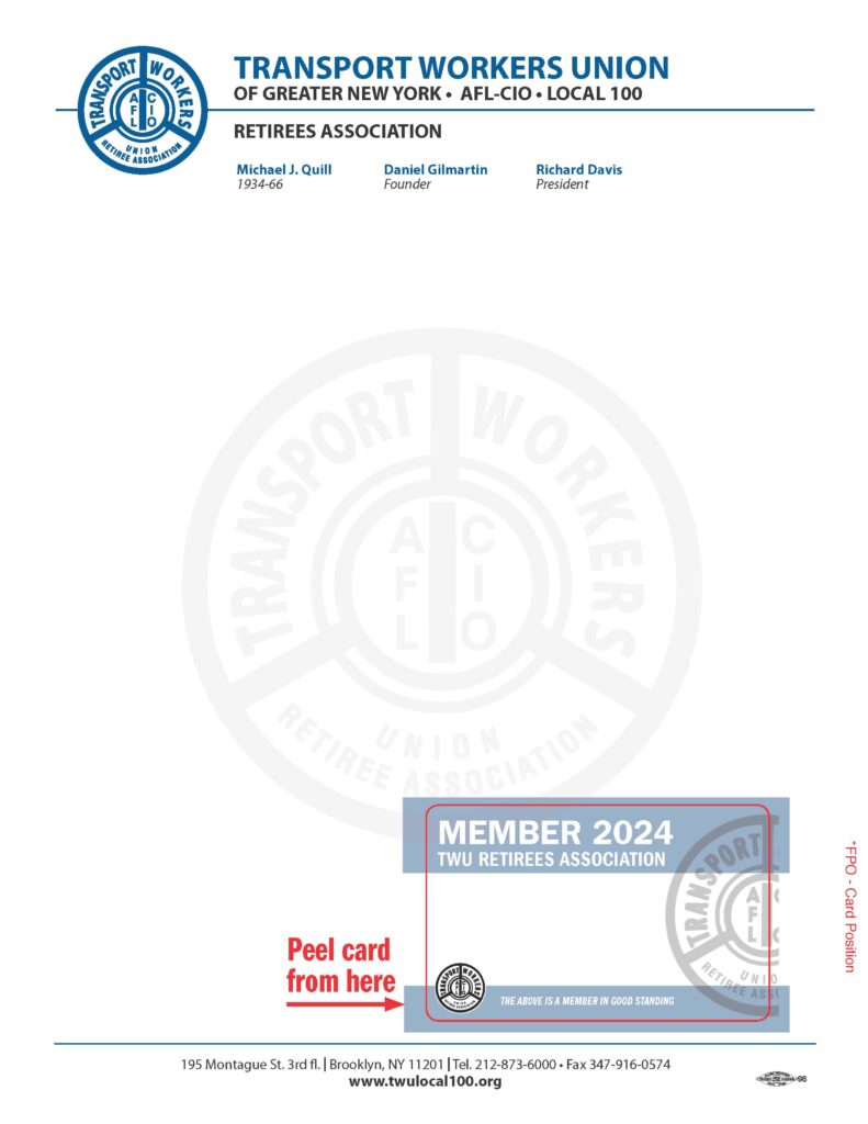 The Retirees Association wants to apologize for a delay in shipping your 2024 membership cards.